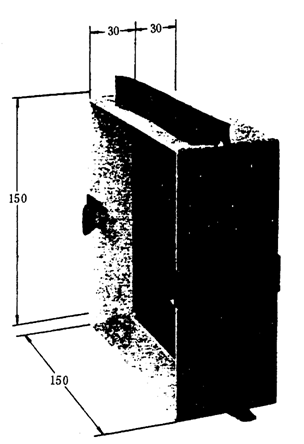 指示器是一些黑棉布片,装设时,它的切边不要朝向被试品,并应注意它们彼此之间不能互相引燃。例如,将它们固定在钢板制的安装骨架上就可以达到要求,见图A1。指示器的尺寸约为150mm×150mm。