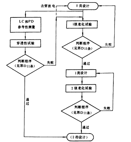 如果局部放电之比值及泄漏电流之比值均未超过2,而且在绝缘试验中未出现闪络或击穿, 则设备就可以定义为2类设计,无需作进一步的试验。