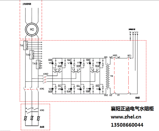 液阻柜接线图_液阻柜一次回路图,液阻柜也称水阻柜、水电阻启动柜、液态电阻软起动柜等,近年来使用比较广泛的液体电阻软启动柜,充分利用了水电阻热容量大,可调性好的特点,可将电机的起动电流控制在2.5-3倍电机额...