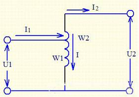 自耦变压器中的电压,电流和匝数之间的关系和一般变压器相同,既:U1/U2=W1/W2=I2/I1=K