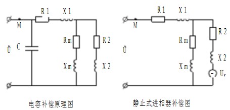 图3 电容补偿原理图 图4 静止式进相器补偿图