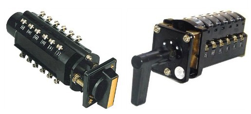 万能转化开关由操作机构、面板、手柄和数个触头座等部件组成。