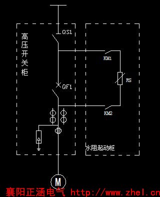 鼠笼型水阻柜原理图(一次系统方案图|一次接线图)见下: