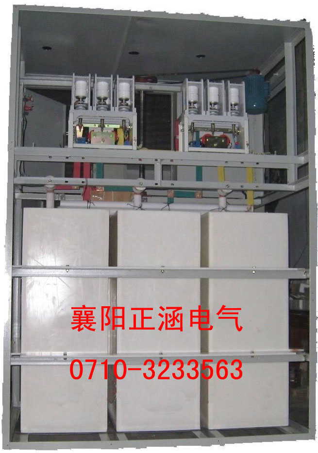 2、水阻柜主体:主要包括3个独立的水箱,水箱底部有一固定的铜极板,水箱上部有一固定的铜极板,分别引出进出一次线。